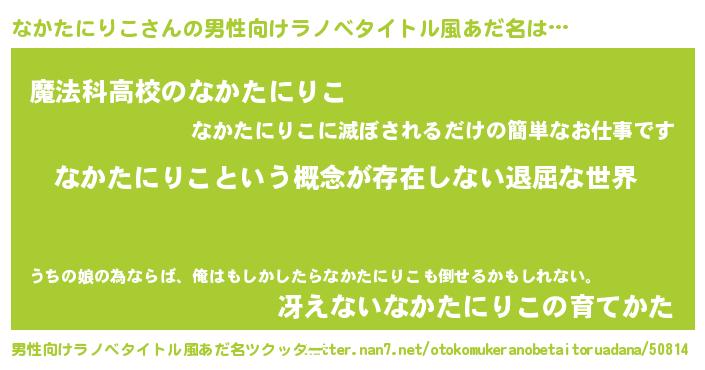 | 女子向けラノベタイトル風あだ名 | 『異世界で失敗しない100のなかたにりこ』 |