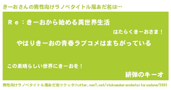 | 女子向けラノベタイトル風あだ名 | 『きーおの雑貨屋さん』『闇のきーお』 |