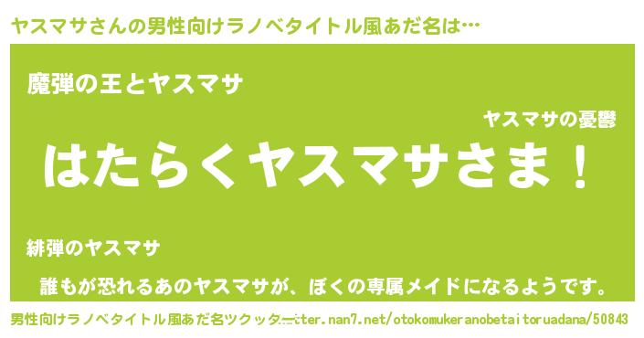 | ヘコむあだ名 | 『ヤスマサ(笑)』『ヤスふぇ~』 |