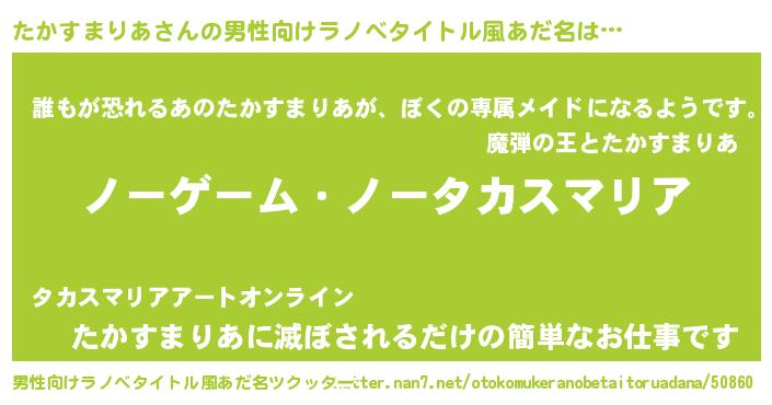 | 女子向けラノベタイトル風あだ名 | 『死神たかすまりあの再婚』 |