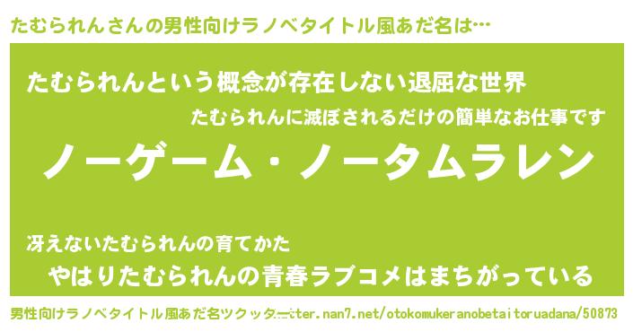 たむられんさんの男性向けラノベタイトル風あだ名をツクッター!