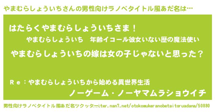 | 肩書あだ名 | 『やまむらしょういちリーダー』 |