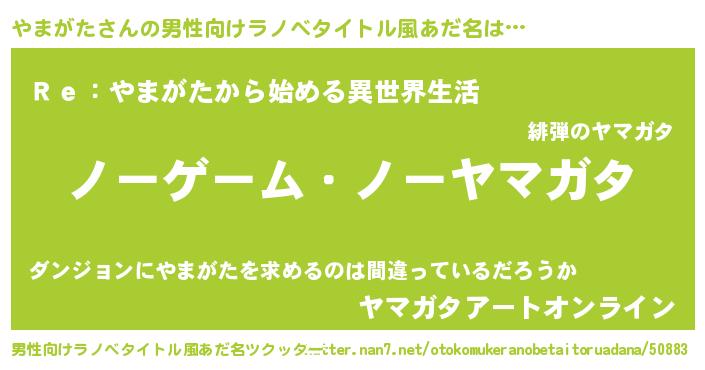 | 女子向けラノベタイトル風あだ名 | 『死神やまがたの再婚』『闇のやまがた』 |