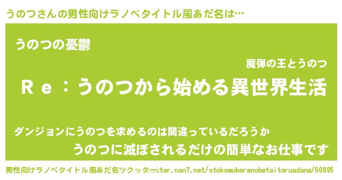 | 女子向けラノベタイトル風あだ名 | 『闇のうのつ』『横柄うのつと宰相陛下』 |