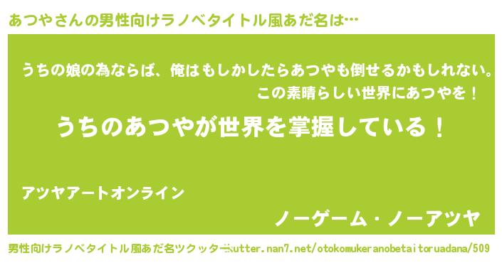 | ファンタジー風あだ名 | 『カークアツラー』『エターナルアツヤー』 |