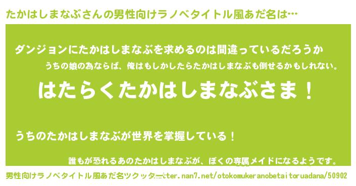 たかはしまなぶさんの男性向けラノベタイトル風あだ名をツクッター!