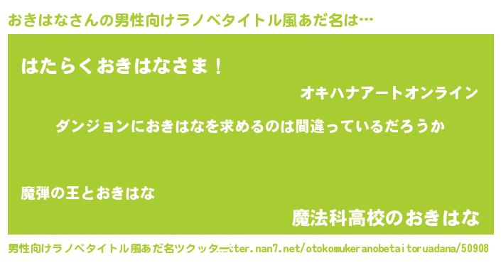 | 女子向けラノベタイトル風あだ名 | 『おきはなの卵を拾いまして』 |