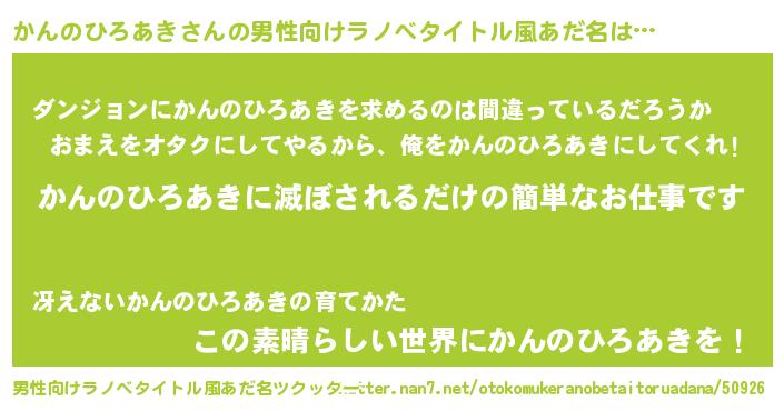 | 伝説のあだ名 | 『覚醒した遊び人かんのひろあき』 |