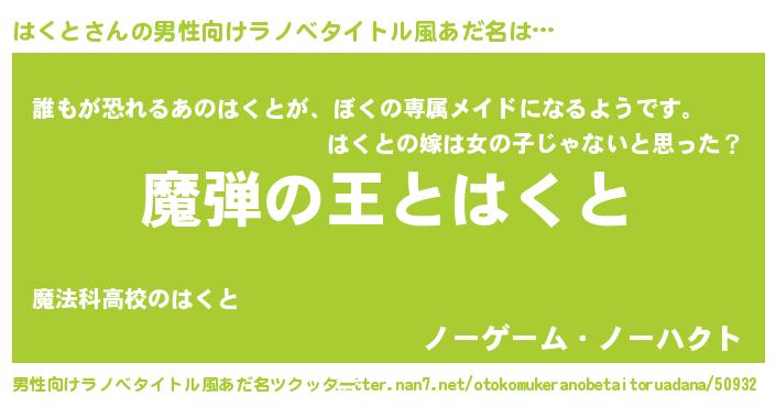 | 意味不明あだ名 | 『住所不定無職はくと(10歳)』『自称はくと』 |