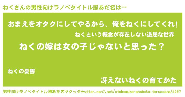 | 女子向けラノベタイトル風あだ名 | 『ねくの卵を拾いまして』 |