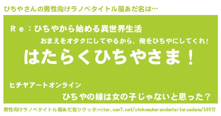 | 女子向けラノベタイトル風あだ名 | 『首の姫と首なしひちや』『闇のひちや』 |