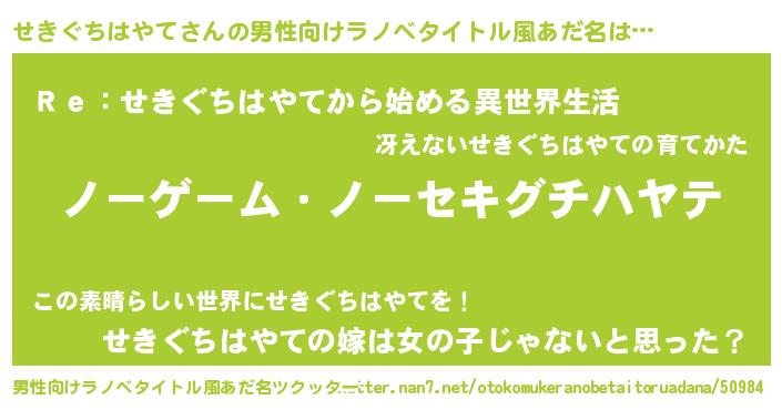 | ヒーロー風カッコイイあだ名 | 『慈愛の使者せきぐちはやて』 |