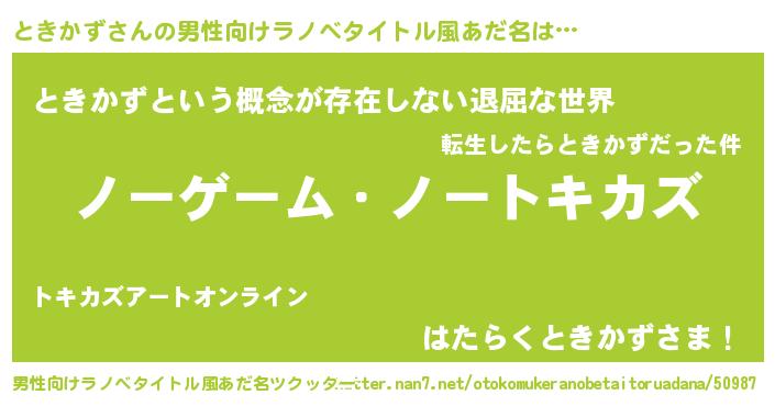 | ヘコむあだ名 | 『ときかず(遠い目)』『ときっふぃ~』 |