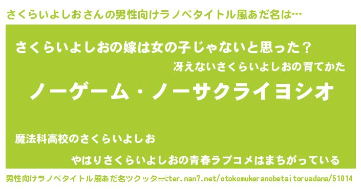 | 女子向けラノベタイトル風あだ名 | 『死神さくらいよしおの再婚』 |