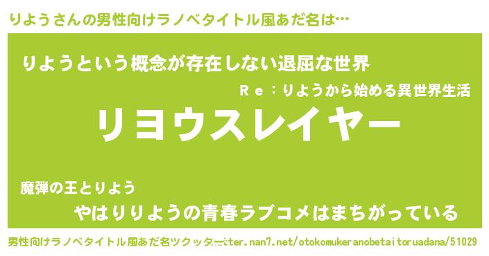 | ヒーロー風カッコイイあだ名 | 『ネオリヨウ』『ウルトラりようマン』 |