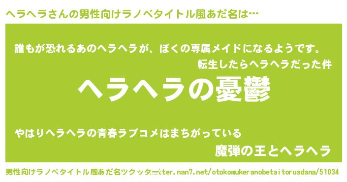 | 女子向けラノベタイトル風あだ名 | 『(仮)ヘラヘラのやんごとなき事情』 |