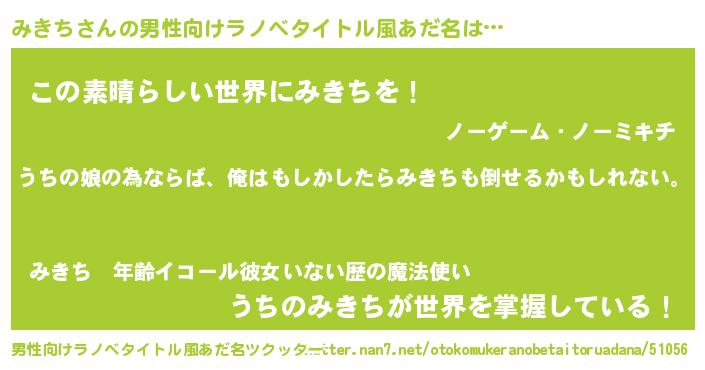 | 女子向けラノベタイトル風あだ名 | 『みきちの婚約者』『死神みきちの再婚』 |