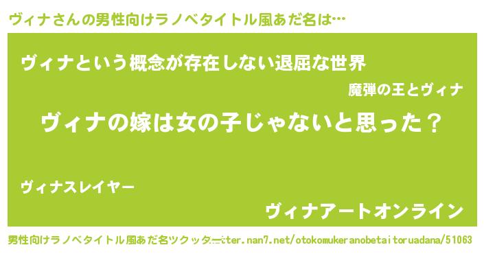 | 女子向けラノベタイトル風あだ名 | 『ヴィナ様がみてる』 |