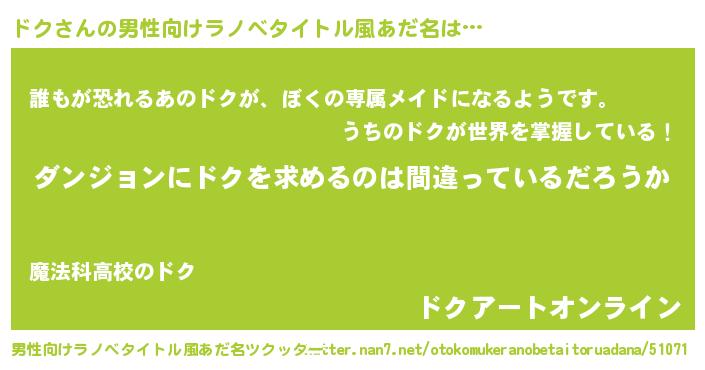 | 女子向けラノベタイトル風あだ名 | 『ドクは平凡を望む』『ドクアンティーク』 |