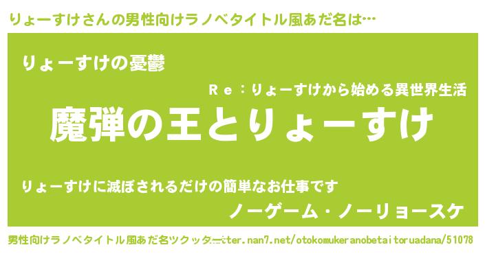 | ヒーロー風カッコイイあだ名 | 『仮面リョダー』『スーパーリョースケ』 |