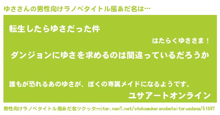 | 胡散臭い通販商品みたいなあだ名 | 『信頼と実績のサプリメント…その名も「ゆさ」』 |