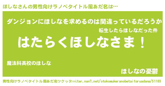 | 意味不明あだ名 | 『とにかく怪しいほしな』『自称ほしな』 |