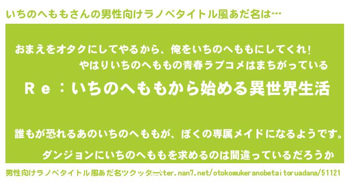 | 意味不明あだ名 | 『自称いちのへもも』 |