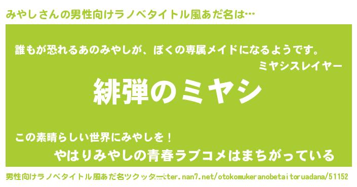 | 女子向けラノベタイトル風あだ名 | 『シンデレラみやし家の靴箱館』 |