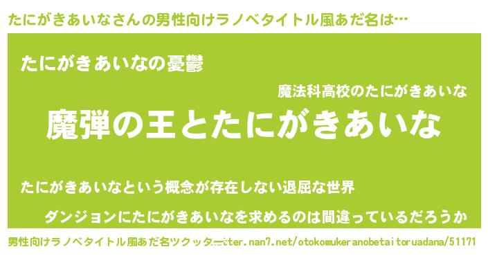 | 欧米人風あだ名 | 『ダレノガレたにがきあいな』 |