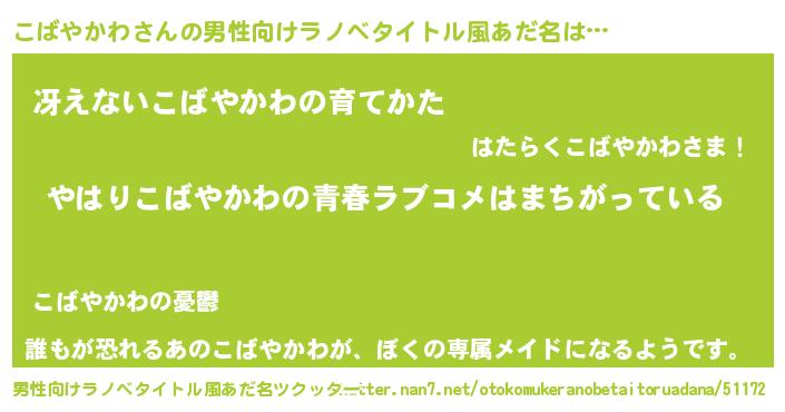 | 女子向けラノベタイトル風あだ名 | 『こばやかわ伯爵の花嫁』 |