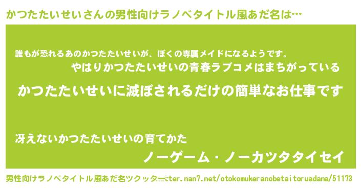 | 意味不明あだ名 | 『永久保存かつたたいせい』 |