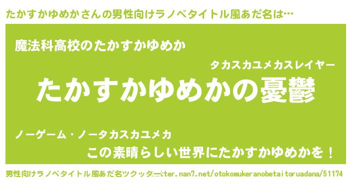 | 女子向けラノベタイトル風あだ名 | 『(仮)たかすかゆめかのやんごとなき事情』 |