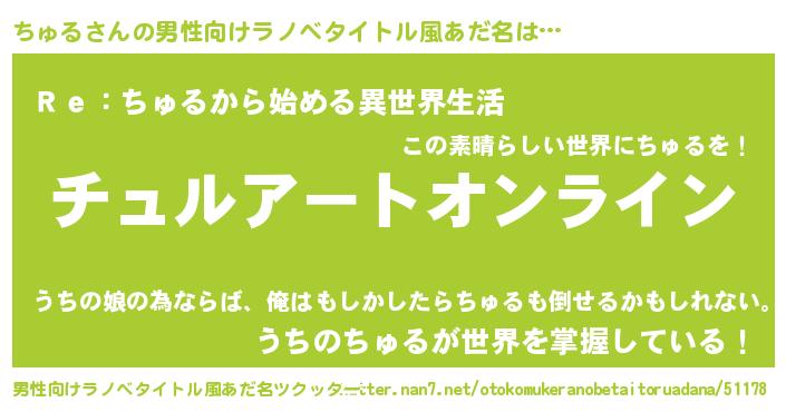 | 女子向けラノベタイトル風あだ名 | 『ちゅる姫と円卓の騎士』 |
