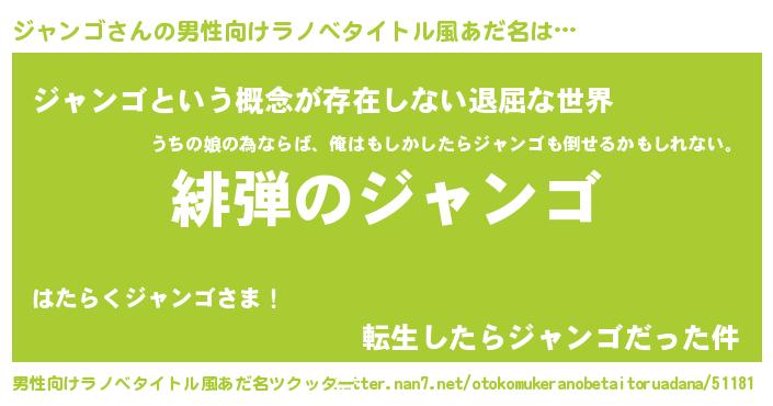 | 胡散臭い通販商品みたいなあだ名 | 『絶対に幸福をもたらす招き猫…その名も「ジャンゴ」』 |