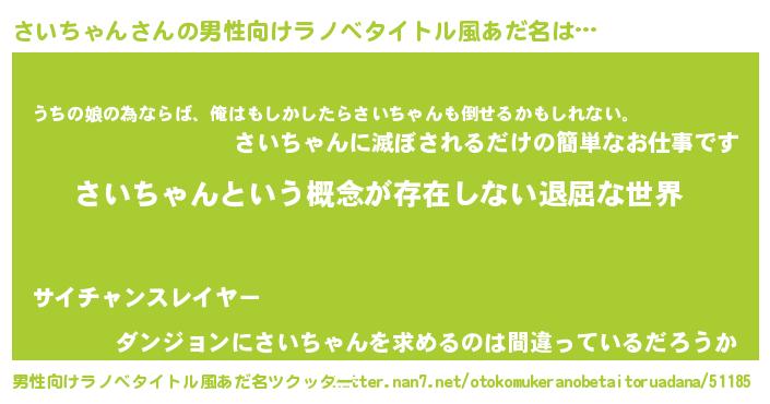 | 意味不明あだ名 | 『永久保存さいちゃん』 |