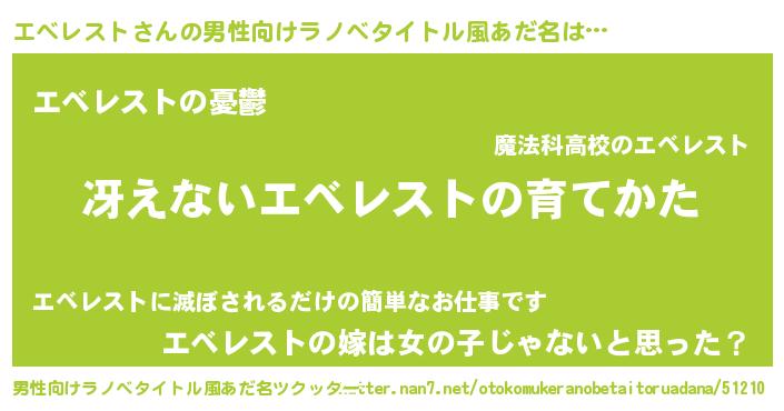 | 胡散臭い通販商品みたいなあだ名 | 『モテモテ間違いなしブレスレット…その名も「エベレスト」』 |