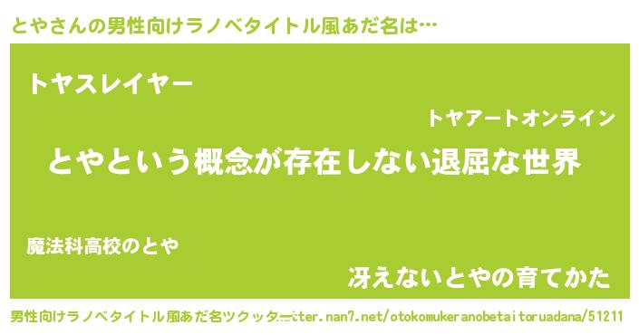 | 胡散臭い通販商品みたいなあだ名 | 『来世でも幸せになれる健康食品…その名も「とや」』 |