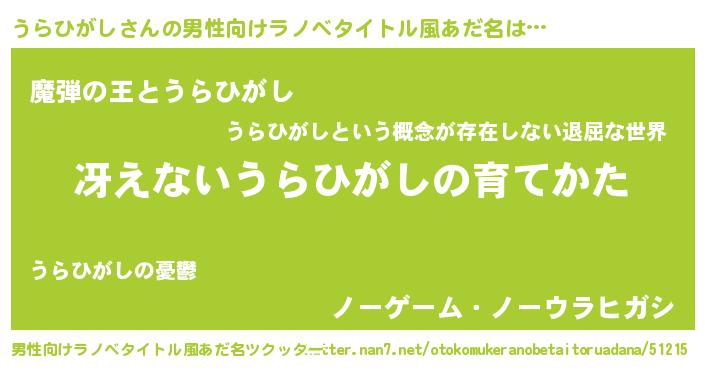 | ヒーロー風カッコイイあだ名 | 『仮面ウラダー』『正義の使者うらひがし』 |