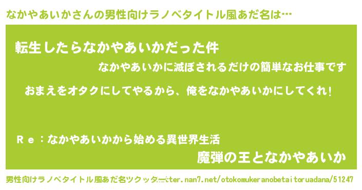 | 胡散臭い通販商品みたいなあだ名 | 『お金では代えられない隕石のかけら…その名も「なかやあいか」』 |