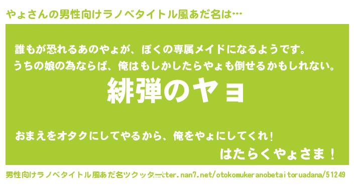 | ヒーロー風カッコイイあだ名 | 『ネオヤョ』『ウルトラやょマン』 |