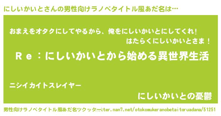 | 意味不明あだ名 | 『自称にしいかいと』 |