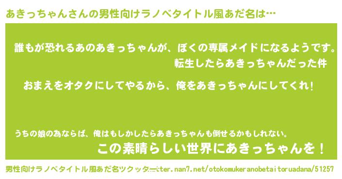 | ヘコむあだ名 | 『あきっちゃん(小並感)』『つくし』 |