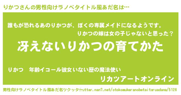 | ヘコむあだ名 | 『りかつ(遠い目)』『りかにゅー』 |