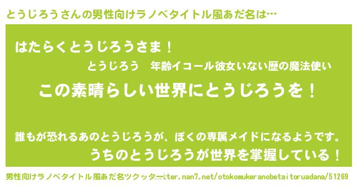 | 意味不明あだ名 | 『住所不定無職とうじろう(95歳)』 |