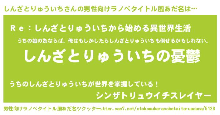 | 女子向けラノベタイトル風あだ名 | 『(仮)しんざとりゅういちのやんごとなき事情』 |