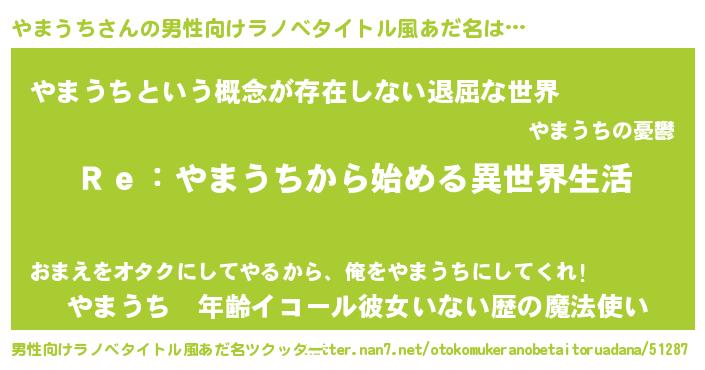 | 意味不明あだ名 | 『自称やまうち』『永久保存やまうち』 |