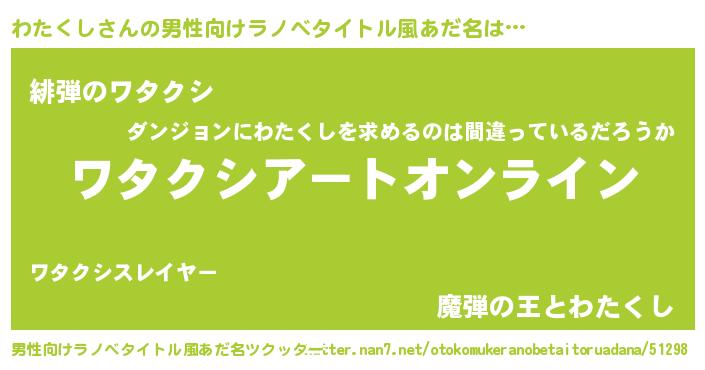 | ヒーロー風カッコイイあだ名 | 『スーパーワタクシ』『仮面ワタダー』 |