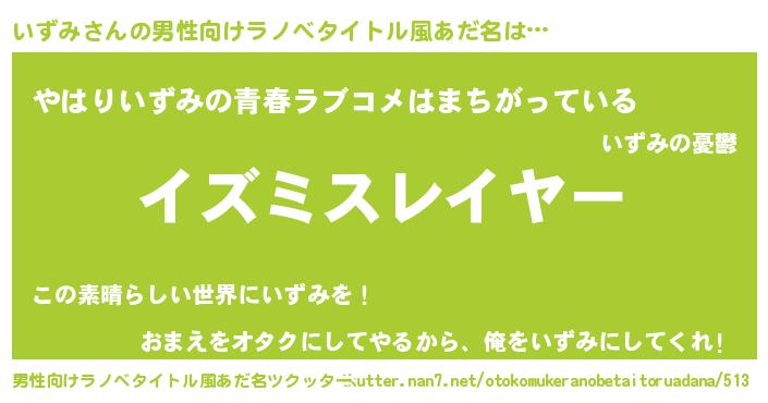 | ヘコむあだ名 | 『牛乳』『いずもー』『いずお』 |