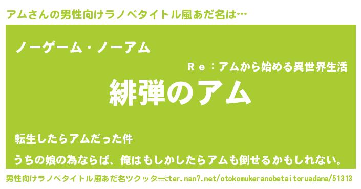 | ヒーロー風カッコイイあだ名 | 『正義の使者アム』『ウルトラアムマン』 |