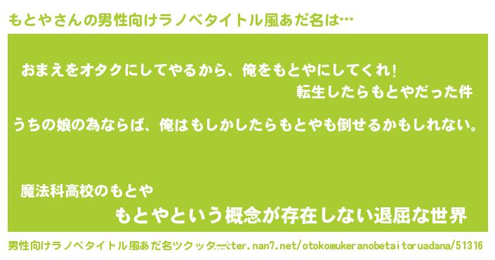 | ポケモン風あだ名 | 『モトヤダネ』『モックウザ』 |